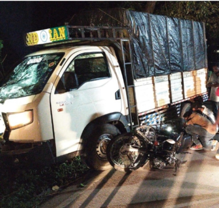 ಸುಳ್ಯ: ದೋಸ್ತ್ ಗೂಡ್ಸ್ ವಾಹನ ಹಾಗೂ ಬುಲೆಟ್ ಬೈಕ್ ನಡುವೆ ನಾಗಪಟ್ಟ ಸೇತುವೆಯ ಬಳಿ ಪರಸ್ಪರ ಢಿಕ್ಕಿ ಸಂಭವಿಸಿದೆ, ಪರಿಣಾಮ ಬುಲ್ಲೆಟ್ ಬೈಕ್ ಸವಾರ ಹರೀಶ್ ಎಂಬುವವರು ತೀವ್ರ ಜಖಂಗೊಂಡು ಸ್ಥಳದಲ್ಲೇ ಕೊನೆಯುಸಿರೆಳೆದಿದ್ದಾರೆ.
