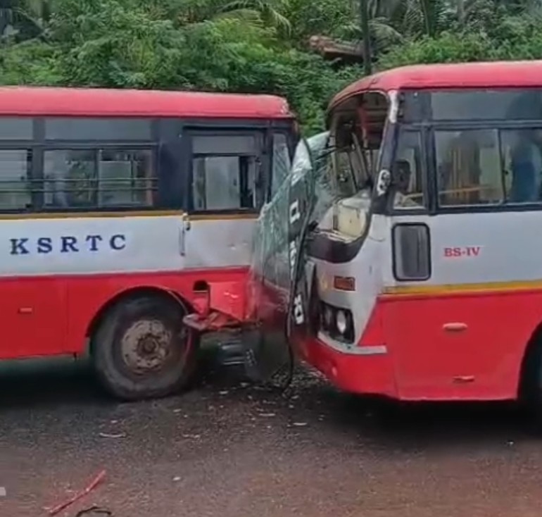 ಪುತ್ತೂರಿನಿಂದ ಸುಳ್ಯಕ್ಕೆ ಬರುತ್ತಿದ್ದ ಸರಕಾರಿ ಬಸ್ ಹಾಗೂ ಸುಳ್ಯದಿಂದ ಪುತ್ತೂರು ಕಡೆ ಹೋಗುತ್ತಿದ್ದ ಸರಕಾರಿ ಬಸ್’ಗಳ ನಡುವೆ ಮುಖಾಮುಖಿ ಡಿಕ್ಕಿ ಸಂಭವಿಸಿದೆ