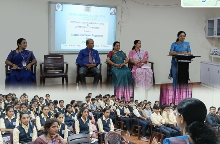 ನೆಹರೂ ಮೆಮೋರಿಯಲ್ ಕಾಲೇಜಿನ ಆಂತರಿಕ ಗುಣಮಟ್ಟ ಭರವಸೆ ಕೋಶ ಮತ್ತು ಇಂಗ್ಲಿಷ್ ವಿಭಾಗವು ಅಂತರರಾಷ್ಟ್ರೀಯ ಅನುವಾದ ದಿನದ ಭಾಗವಾಗಿ ಅನುವಾದದ ಕುರಿತು ವಿದ್ಯಾರ್ಥಿಗಳಿಗೆ ಉಪನ್ಯಾಸ ಕಾರ್ಯಕ್ರಮವನ್ನು ಸೆಪ್ಟೆಂಬರ್ 30ನೇ ಮಂಗಳವಾರ ಏರ್ಪಡಿಸಲಾಗಿತ್ತು.