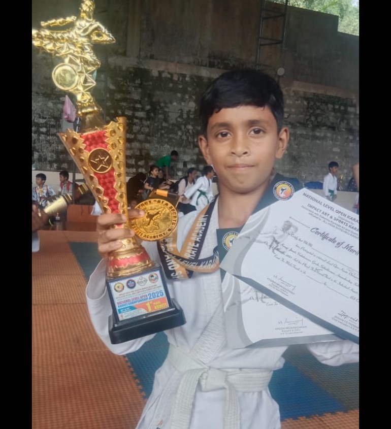 ಸುಳ್ಯ: ಇಂಪಾಕ್ಟ್ ಆರ್ಟ್ & ಸ್ಪೋರ್ಟ್ಸ್ ಕರಾಟೆ ಅಕಾಡೆಮಿ ಹಾಗೂ ದಕ್ಷಿಣ ಕನ್ನಡ ಆರ್ಟ್ಸ್ & ಸ್ಪೋರ್ಟ್ಸ್ ಕರಾಟೆ ಅಸೋಸಿಯೇಶನ್ ಸಹಯೋಗದಲ್ಲಿ ಸುಳ್ಯದ ಅಮರಜ್ಯೋತಿ ಕೆ ವಿ ಜಿ ಸಭಾಂಗಣದಲ್ಲಿ ನಡೆದ ರಾಷ್ಟ್ರ ಮಟ್ಟದ ಕರಾಟೆ ಚಾಂಪಿಯನ್ ಶಿಪ್ ನಲ್ಲಿ ಸುಳ್ಯ ಶಾಂತಿನಗರ ನಿವಾಸಿ ಪ್ರವೀಣ್ ಹಾಗೂ ಕವಿತಾ ದಂಪತಿಗಳ ಪುತ್ರ ಮನನ್.ಪಿ ಗೌಡ ಅವಳಿ ಪ್ರಶಸ್ತಿ ಪಡೆದುಕೊಂಡಿದ್ದಾನೆ. ಕರಾಟೆಯ ಕಟಾ ಹಾಗೂ ಕುಮಿಟಿ ವಿಭಾಗದಲ್ಲಿ, ಎರಡು ವಿಭಾಗದಲ್ಲಿ ಪ್ರಥಮ ಸ್ಥಾನ ಪಡೆದಿದ್ದಾನೆ. ಮನನ್ ಗೌಡ ಸಂತ ಬ್ರಿಜಿಡ್ಸ್ ಶಾಲೆಯಲ್ಲಿ 5 ನೇ ತರಗತಿಯಲ್ಲಿ ವ್ಯಾಸಂಗ ಮಾಡುತ್ತಿದ್ದು, ಧನುಷ್ ಹಾಗೂ ಉದಯ ರವರ ತರಬೇತಿಯಲ್ಲಿ ಬೆಳೆದಿದ್ದಾನೆ.